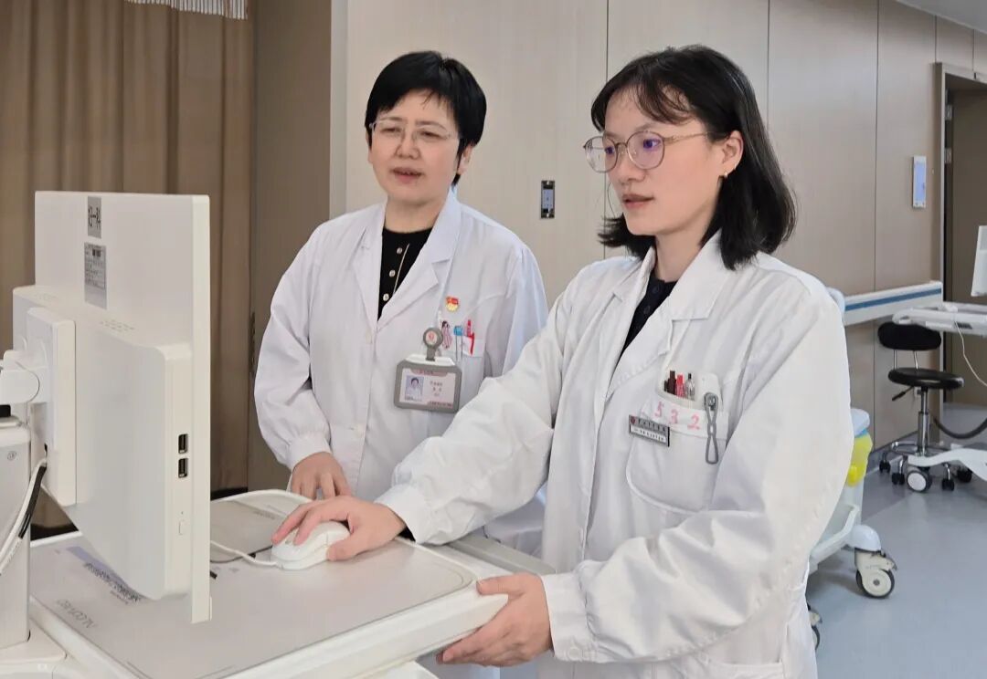常淑华(左)和林晶正在盘问患者术后情况